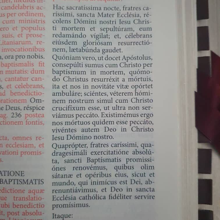 « § 1. Une indulgence plénière est accordée au fidèle qui dans la célébration de la Vigile pascale ou le jour anniversaire de son baptême, renouvelle les promesses du baptême selon une formule légitimement approuvée. »